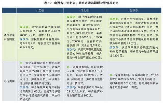 山西省、河北省、北京市清潔取暖補貼情況對比。資料來源:北方典型地區(qū)農(nóng)村居民冬季取暖研究報告