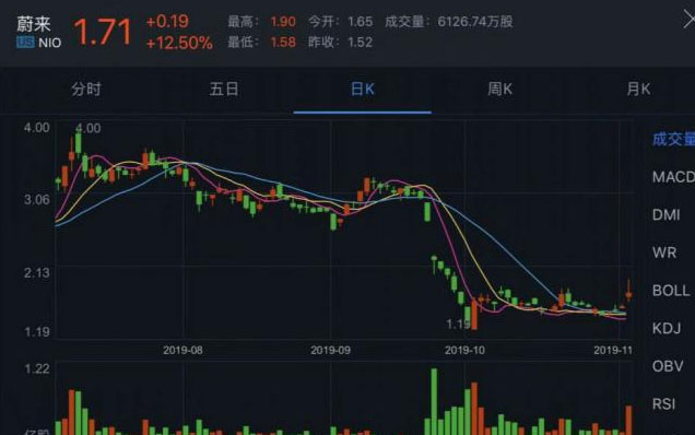 中國儲能網(wǎng)訊: 隨著10月份交付數(shù)據(jù)的公布,蔚來的股價迅速出現(xiàn)反彈。11月4日,蔚來公布10月份交付2526臺,環(huán)比上漲25%,同比增長61%,創(chuàng)下年內新高。同日,蔚來股價以1.71美元報收,上漲幅度為12.5%。在過去的7個交易日內,受前CFO謝東螢離職的影響,蔚來股價經(jīng)歷了周內低谷,其10月29日股價最低僅1.39美元。