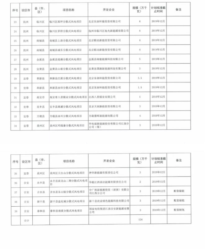 中國儲能網訊:近日,江西省能源局下達2019年第一批分散式風電開發(fā)建設方案通知。對申請列入2019年度分散式風電開發(fā)方案的項目進行了篩選,研究確定了39個建設項目、總裝機容量124萬千瓦時予以下達。其中包括3個風電配套儲能項目和1個風電配套制氫項目。