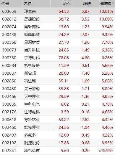 中國儲能網(wǎng)訊:鋰電池板塊持續(xù)走強,國軒高科、璞泰來、恩捷股份集體漲停,鵬輝能源沖擊三連板,寧德時代、星源材質(zhì)、當升科技、江特電機走高。
