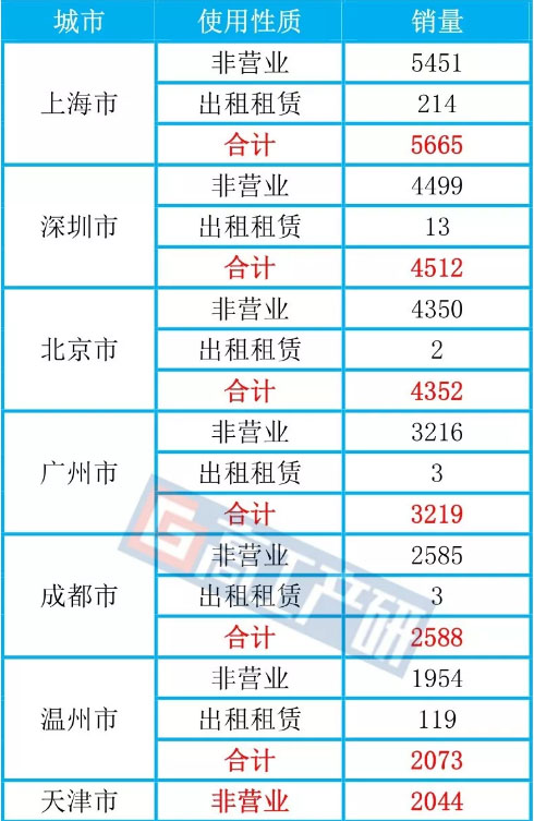 從城市銷量來看,2019年前三季度造車新勢力新能源汽車銷量主要集中在上海、深圳、北京、廣州、成都、溫州、天津、杭州、??凇⑧嵵?,該十座城市銷量合計占比達(dá)65.10%。其中,投入出租租賃市場的份額僅占5.8%,造車新勢力未來布局出租租賃市場業(yè)務(wù)的空間廣闊。最令人關(guān)注的是威馬汽車通過旗下的智慧出行品牌即客行在??谑型卣苟嗄J骄W(wǎng)約車業(yè)務(wù),促使該城市用于出租租賃市場的銷量遠(yuǎn)超出非營業(yè)使用性質(zhì)銷量。