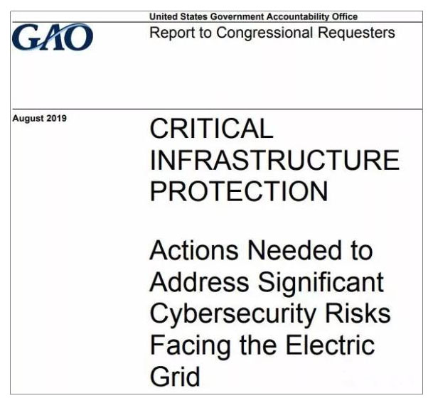 2019年8月,美國政府問責署(GAO)發(fā)布了《關(guān)鍵基礎(chǔ)設(shè)施保護:采取措施應(yīng)對電網(wǎng)面臨的巨大賽博安全風險》報告,對美國電網(wǎng)面臨的賽博安全風險進行了分析。