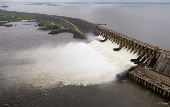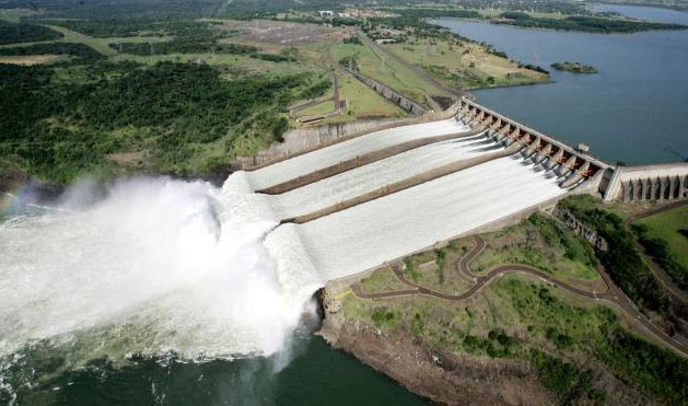 伊泰普水電站(Itaipu Binacional, Itaipu Dam),位于巴拉那河流(世界第五大河,年徑流量7250億立方米)經(jīng)巴西與巴拉圭兩國邊境的河段。是目前世界第二大水電站,由巴西與巴拉圭共建,發(fā)電機(jī)組和發(fā)電量由兩國均分。目前共有20臺發(fā)電機(jī)組(每臺70萬千瓦),總裝機(jī)容量1400萬千瓦,年發(fā)電量900億度,其中2008年發(fā)電948.6億度。是當(dāng)今世界裝機(jī)容量第二大,發(fā)電量第二大水電站,僅次于我國三峽電站。