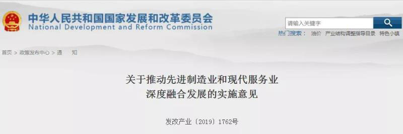 關于推動先進制造業(yè)和現代服務業(yè)深度融合發(fā)展的實施意見