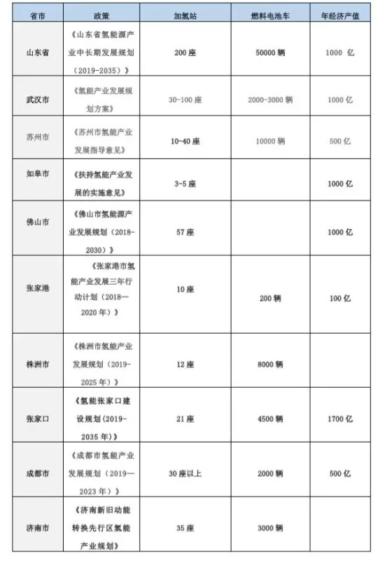 2019年8月成都發(fā)布《成都市氫能產(chǎn)業(yè)發(fā)展規(guī)劃(2019—2023年)》,到2023年,成都市氫能產(chǎn)業(yè)力爭實現(xiàn)主營業(yè)務(wù)收入超過500億元,建設(shè)全國知名的氫能產(chǎn)業(yè)高端裝備制造基地,全市推廣應(yīng)用燃料電池汽車2000輛以上;建設(shè)覆蓋全域成都的加氫站30座以上,形成以成都平原為中心,輻射全省的氫能綜合交通網(wǎng)絡(luò)。