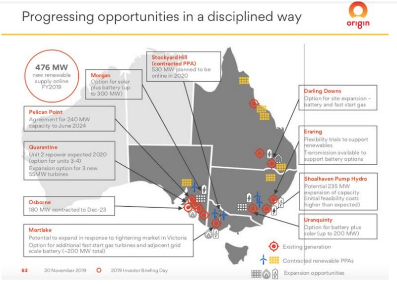 Origin公司在悉尼舉行的年度投資者簡(jiǎn)報(bào)會(huì)上表示,其計(jì)劃部署的電池儲(chǔ)能系統(tǒng)與現(xiàn)有四個(gè)可再生能源發(fā)電設(shè)施的配套部署:昆士蘭州Darling Downs天然氣發(fā)電廠、新南威爾士州Eraring燃煤發(fā)電廠和Uranquity天然氣發(fā)電廠,以及維多利亞州的Mortlake天然氣發(fā)電廠。