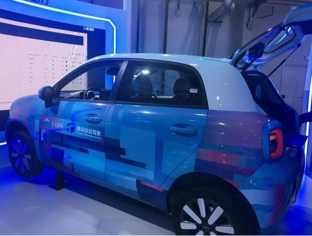 圖為展覽會(huì)上的無(wú)人駕駛汽車