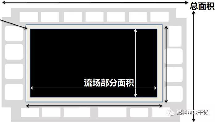 雙極板的面積利用率亦稱有效面積比,即雙極板的有效面積(流場(chǎng)部分面積)與雙極板總面積的比值。雙極板面積利用率與電堆功率密度密切相關(guān)(流場(chǎng)部分之外的雙極板面積并不發(fā)電)。通常,面積利用率越大,功率密度越高。