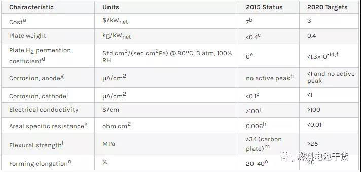 美國(guó)能源部(DOE)最新雙極板技術(shù)指標(biāo)