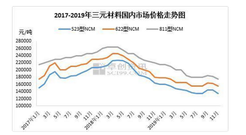 硫酸鈷市場價格下調,終端需求不佳使得企業(yè)出貨難度增大,正極材料廠商剛需采購,多數(shù)并不認同高價原料,觀望情緒下原料價格疲軟運行。傳統(tǒng)旺季時間逐步結束,新能源汽車市場未能擺脫汽車市場總體疲軟以及補貼退坡的雙重利空影響,消費者短期內的采購意愿持續(xù)下滑。11月份正極材料市場延續(xù)偏弱行情,龍頭正極材料企業(yè)開工不佳,中上游市場供應充足,正極材料價格仍有下調空間。