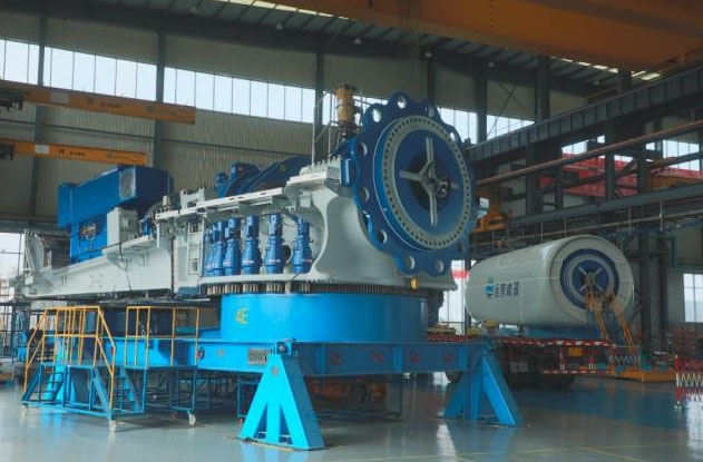 遠(yuǎn)景能源所有海上風(fēng)機(jī)都來自于位于江蘇射陽的遠(yuǎn)景能源智能制造基地。遠(yuǎn)景能源在射陽建廠不久,又吸引了葉片、塔筒等供應(yīng)商在此建廠,形成了以遠(yuǎn)景能源為核心的射陽智慧風(fēng)電裝備產(chǎn)業(yè)園。產(chǎn)業(yè)園分為主機(jī)生產(chǎn)區(qū)、風(fēng)機(jī)總裝區(qū)、研發(fā)展示區(qū)、海洋工程區(qū)、倉儲(chǔ)物流區(qū)等主體功能區(qū),主要生產(chǎn)4-6MW的海上風(fēng)機(jī),涵蓋了整機(jī)裝備制造、風(fēng)機(jī)配套生產(chǎn)、新能源開發(fā)、海上風(fēng)電工程建設(shè)、運(yùn)維服務(wù)的全產(chǎn)業(yè)鏈體系。