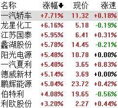 中國儲(chǔ)能網(wǎng)訊:12月2日早盤,新能源汽車板塊直線拉升,其中,一汽轎車一度沖擊漲停,截至發(fā)稿,一汽轎車漲超7%,龍星化工漲超6%,江蘇國泰、陽光電源、一汽夏利等紛紛跟漲。