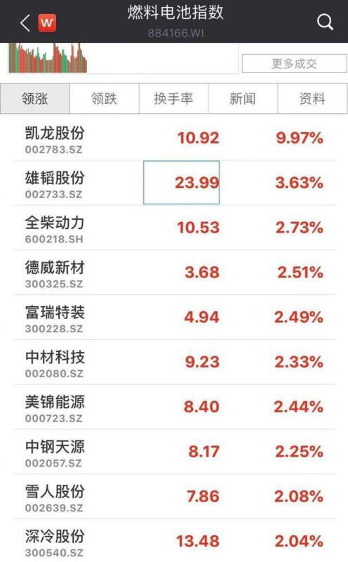 12月3日早盤(pán),燃料電池板塊異動(dòng)走強(qiáng),截至發(fā)稿,凱龍股份漲停,雄韜股份漲超3%,全柴動(dòng)力、德威新材、富瑞特裝紛紛跟漲。