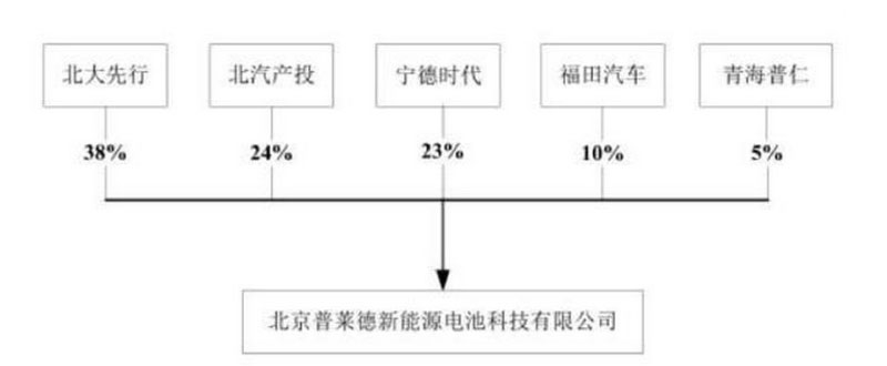 至此,普萊德的股權(quán)結(jié)構(gòu)變?yōu)椋罕贝笙刃谐止?8%,北汽產(chǎn)投持股24%,寧德時(shí)代23%,福田汽車持股10%,青海普持股仁5%(備注:青海普仁為普萊德的員工持股平臺(tái))。