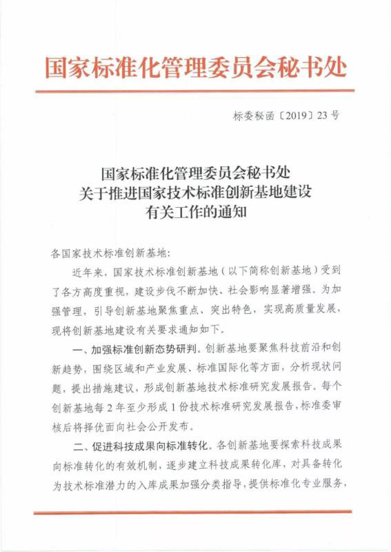 國家標(biāo)準(zhǔn)化管理委員會:關(guān)于推進(jìn)國家技術(shù)標(biāo)準(zhǔn)創(chuàng)新基地建設(shè)有關(guān)工作的通知