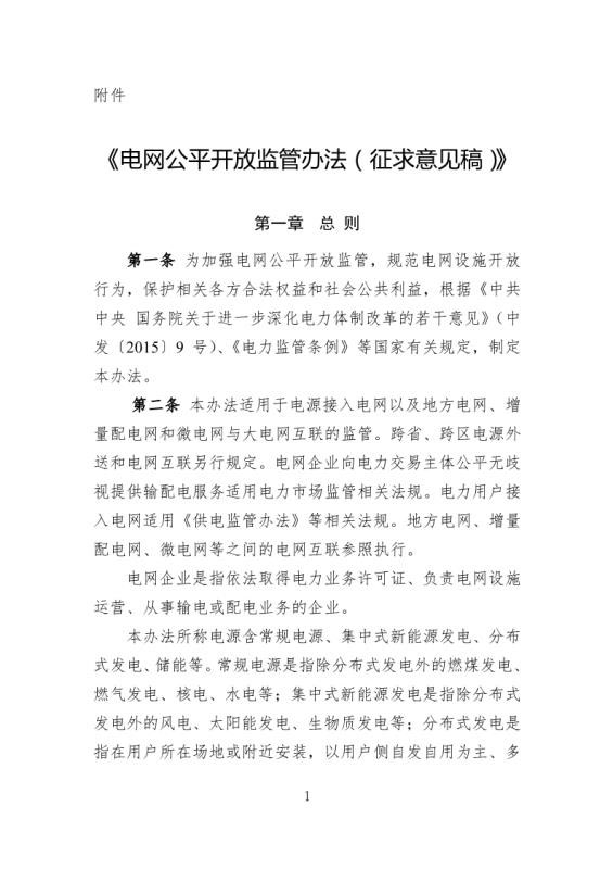 附件:電網(wǎng)公平開(kāi)放監(jiān)管辦法(征求意見(jiàn)稿)