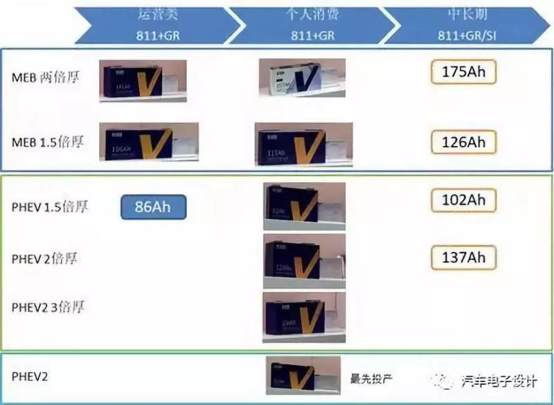 尺寸:目前看到蜂巢在做傳統(tǒng)的355、590的模組都要做,往PHEV的標準模組、BEV的355模組和未來590的模組要求 這兩點在目前的產(chǎn)品體系里面是比較清楚的,如下所示,整體的規(guī)劃都是按照NCM811來做,其實對于一個新的電池企業(yè)往相對成熟的產(chǎn)品系列是沒有意義的,一個是沒有價格優(yōu)勢,另外一個是積累的經(jīng)驗過一個產(chǎn)品周期可能就沒用了。