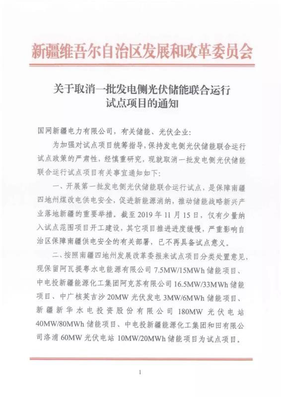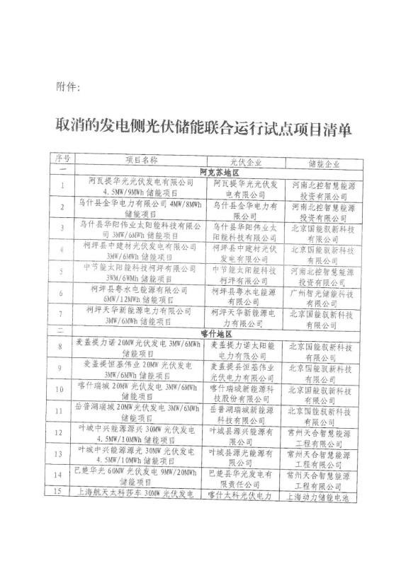 根據(jù)《關(guān)于取消一批發(fā)電側(cè)光伏儲能聯(lián)合運行試點項目的通知》,最終保留的僅有5個,其余的31個項目,基于“保持試點政策的嚴肅性”,已被移出名單。相應(yīng)空缺出來的指標,新疆發(fā)改委稱將另行安排。