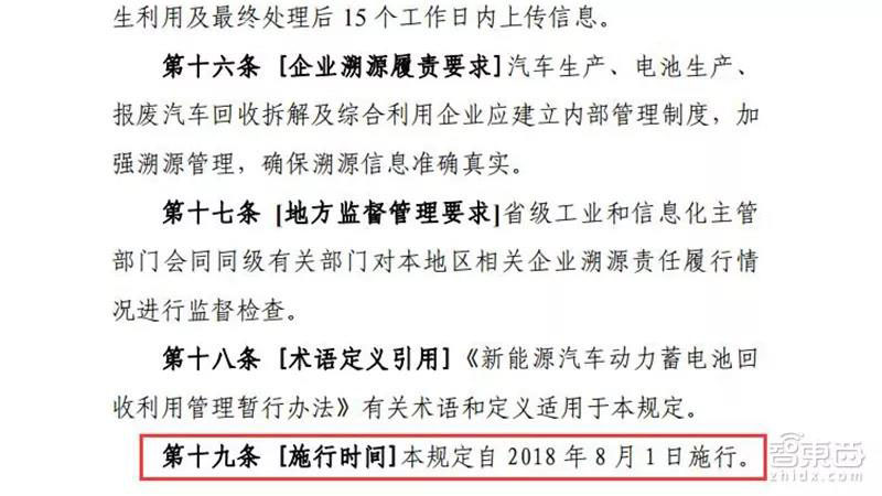 8月1日,《新能源汽車動(dòng)力蓄電池回收利用溯源管理暫行規(guī)定》(征求意見稿)正式實(shí)施,規(guī)定了監(jiān)督流程,建立了溯源平臺(tái)。