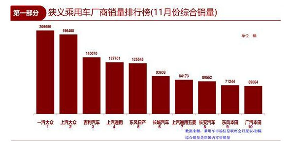 值得注意的是,自主頭部企業(yè)的表現(xiàn)令人驚喜。其中,吉利11月銷量達到140070輛,從狹義乘用車角度統(tǒng)計,已超越上汽通用12369輛,高居銷量季軍?!半S著年末的到來,吉利預計還會在春節(jié)前迎來一波‘爆發(fā)式’增長。歷年春節(jié)前都是入門級車型的消費高峰,而消費者也更青睞領(lǐng)頭品牌的產(chǎn)品?!贝迻|樹分析道。