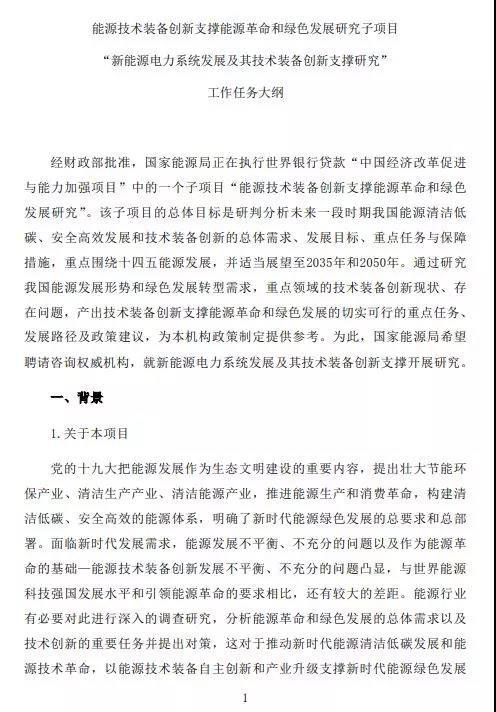 經(jīng)財(cái)政部批準(zhǔn),國家能源局正在執(zhí)行世界銀行貸款“中國經(jīng)濟(jì)改革促進(jìn)與能力加強(qiáng)項(xiàng)目”中的一個(gè)子項(xiàng)目“能源技術(shù)裝備創(chuàng)新支撐能源革命和綠色發(fā)展研究”。該子項(xiàng)目的總體目標(biāo)是研判分析未來一段時(shí)期我國能源清潔低碳、安全高效發(fā)展和技術(shù)裝備創(chuàng)新的總體需求、發(fā)展目標(biāo)、重點(diǎn)任務(wù)與保障措施,重點(diǎn)圍繞“十四五”能源發(fā)展,并適當(dāng)展望至2035年和2050年。通過研究我國能源發(fā)展形勢(shì)和綠色發(fā)展轉(zhuǎn)型需求,重點(diǎn)領(lǐng)域的技術(shù)裝備創(chuàng)新現(xiàn)狀、存在問題,提出技術(shù)裝備創(chuàng)新支撐能源革命和綠色發(fā)展的切實(shí)可行的重點(diǎn)任務(wù)、發(fā)展路徑及政策建議,為本機(jī)構(gòu)政策制定提供參考。