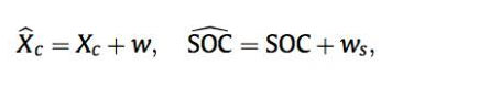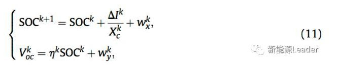 在該模型中的上角標(biāo)是一個(gè)時(shí)間相關(guān)參數(shù),h是描述SoC與Voc之間的關(guān)系的常數(shù),可以從OCV-SoC曲線上獲得,Wx和Wy是高斯白噪聲,該模型是一個(gè)線性系統(tǒng),因此適合采用線性卡爾曼濾波,通過(guò)卡爾曼濾波可以對(duì)電池組的SoC和容量進(jìn)行高效率的估算,電池組的SoC和容量的估算可以由下式計(jì)算而得