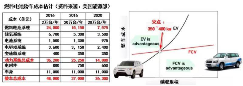 需要注意的是,當(dāng)前轎車領(lǐng)域在全球范圍內(nèi)仍然是純電動車占主流,絕大多數(shù)企業(yè)銷售的純電動車遠(yuǎn)超燃料電池汽車,誕生了像特斯拉這樣的明星企業(yè)。即使是燃料電池最堅定的支持者豐田,近期也與比亞迪在電池領(lǐng)域達(dá)成合作,因此轎車也就是乘用車的發(fā)展趨勢仍以純電動為主。雖然目前純電動發(fā)展速度較快,但從成本來看,將來燃料電池在轎車上仍然會有應(yīng)用,這主要有以下兩個原因。