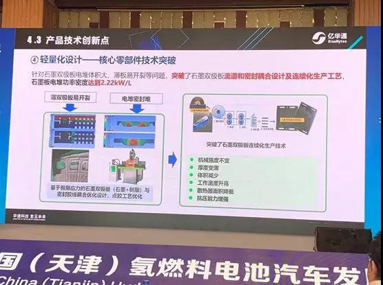 6、輕量化設(shè)計(jì)——核心零部件技術(shù)突破。針對(duì)石墨雙極板電堆體積大、薄板易開裂等問題,突破了石墨雙極板流道和密封耦合設(shè)計(jì)及連續(xù)化生產(chǎn)工藝,石墨板電堆功率密度達(dá)到2.22kW/L。