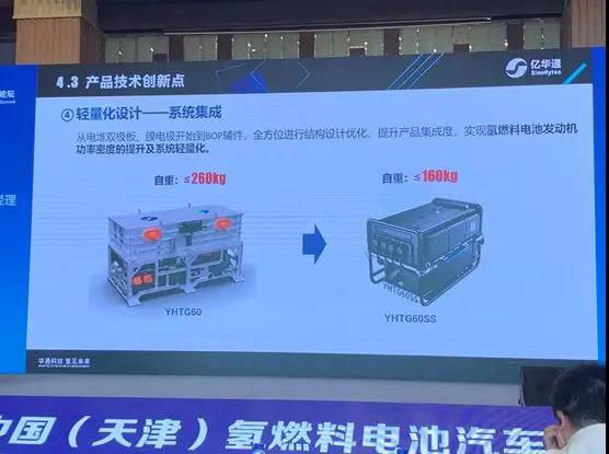 5、輕量化設(shè)計(jì)——系統(tǒng)集成。YHTG60和YHTG60SS燃料電池系統(tǒng)額定功率相同,但重量從≤260kg降為≤160kg。
