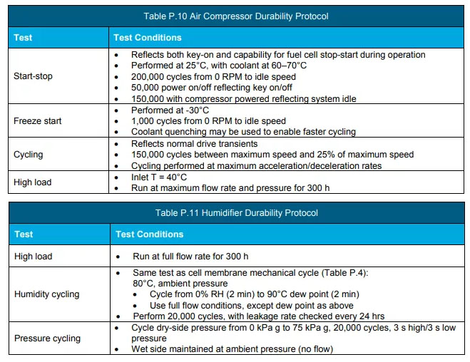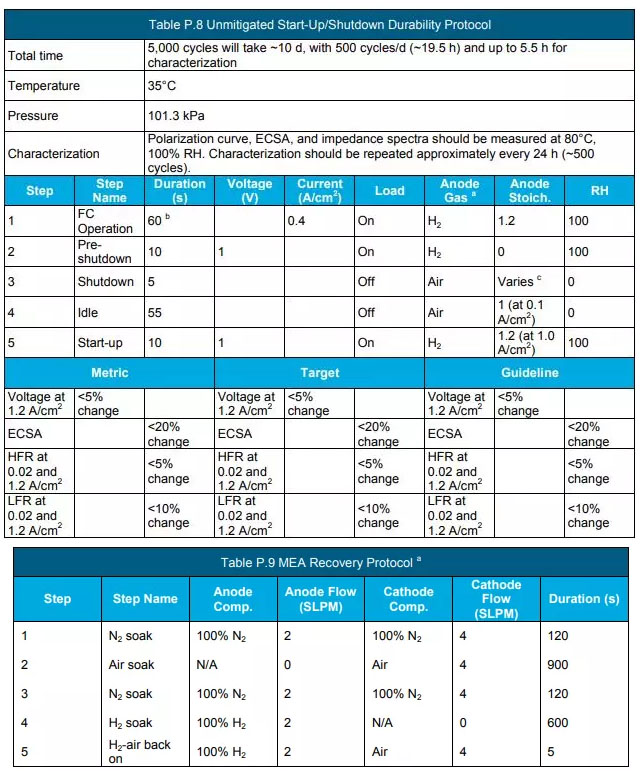 d 溫度區(qū)間在80°C至最高溫度或更高。根據(jù)表P.6和表P.7中的極化曲線和耐用性測試協(xié)議,測試后額定功率下降<10%。