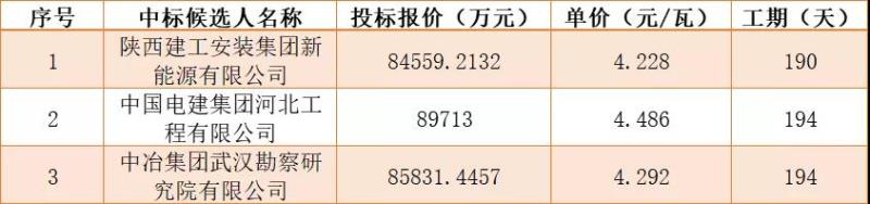 12月16日,海南州特高壓外送基地電源配置項目塔拉灘七標段100MW光伏、八標段100MW光伏項目公示EPC總承包工程中標候選人,陜西建工安裝集團新能源有限公司以總價84559.2132萬元、單價4.228元/瓦位列第一中標候選人,具體如下。