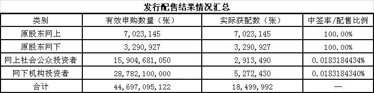 發(fā)行:網(wǎng)上中簽率為0.0183184434%