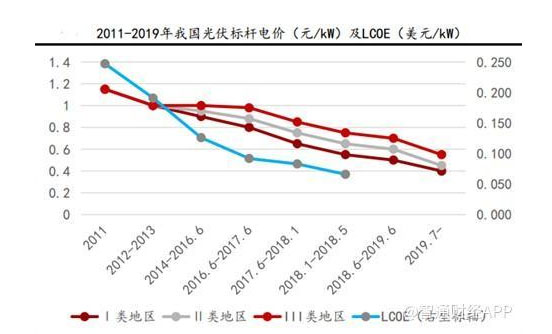 據(jù)了解,2011年至2019年我國光伏平均度電成本(LCOE)從0.247美元/kW 下降至0.066美元/kW,降幅達到73.28%,主要得益于原材料成本及技術水平提升的多方面作用。而同期標桿電價下降幅度最大的I類資源區(qū)從1.15元/kW下降至0.55元/kW,降幅為52.17%,成本端更快的下降速度保證了企業(yè)盈利水平,縮短行業(yè)降本增效的陣痛期。