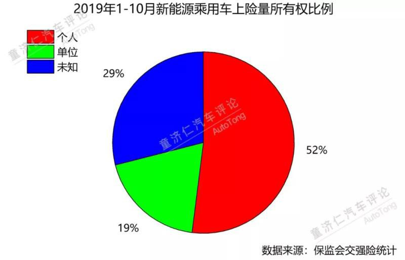 根據(jù)保監(jiān)會的交強(qiáng)險數(shù)據(jù),今年1-10月,新能源汽車?yán)塾嬌想U量為71.3萬輛,其中37.1萬輛上險量所有權(quán)為“個人”,占總量的52%。另外,除了19%的上險量所有權(quán)為“單位”外,還有29%為未知。