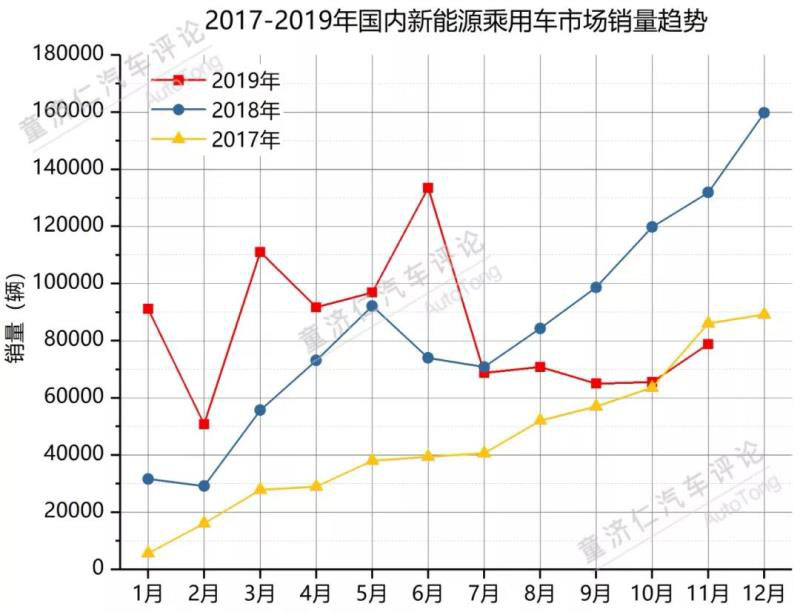 如果按照2017年和2018年的慣例,新能源汽車市場會在下半年發(fā)力沖刺。但是2019年中補(bǔ)貼政策的大幅退坡,讓新能源汽車市場在6月達(dá)到頂峰后陡然下滑,今年7-11月,國內(nèi)新能源乘用車市場同比下滑31.88%。