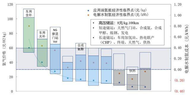 電解水制氫成本與應(yīng)用場景經(jīng)濟性臨界點示意圖