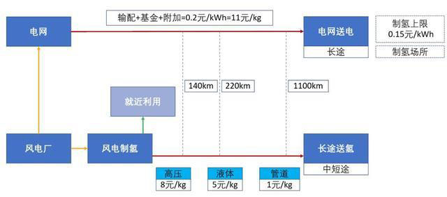 我們還認為長距離輸電有兩個因素需要去考慮,首先風(fēng)電制氫的風(fēng)電上網(wǎng)電價要足夠低,如果高于當?shù)孛弘姌藯U電價,這個商業(yè)模式就不成立了;另外,在終端制氫會碰到較多用地場所如安全用地方面的限制,這是需要去考慮的現(xiàn)實因素。