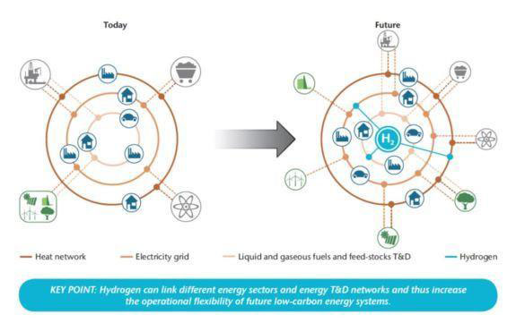 我們認為未來20年,電能還是站在一個主流的位置,但氫能是一個不可替代的配角,用于實現(xiàn)不同能源網(wǎng)絡(luò)之間的互聯(lián)。通過氫能,我們可以把目前的熱網(wǎng)、電網(wǎng)和油氣管網(wǎng)之間形成一個協(xié)調(diào)。也就是說,未來我們能源體系的優(yōu)化,不僅僅局限在某一個能源品種里面,而是可以通過氫能實現(xiàn)整體的優(yōu)化,甚至通過氫能實現(xiàn)能源其他行業(yè)之間的互動。