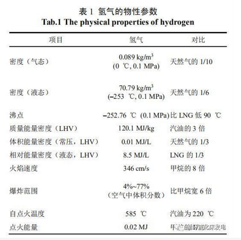 氫氣燃燒只產(chǎn)生水,因此被認(rèn)為是最清潔、真正實(shí)現(xiàn)零排放的能源。但由于其二次能源的基本屬性,氫氣的清潔和環(huán)保性不應(yīng)僅體現(xiàn)在最終被利用時(shí),還要著眼于生產(chǎn)氫氣的一次能源的來源以及氫氣的制備、運(yùn)輸、存儲和最終使用等環(huán)節(jié),從全生命周期的角度來考察。這些環(huán)節(jié)都需要消耗能源資源,也可能會帶來相應(yīng)的污染物與溫室氣體排放。氫氣的物性參數(shù)見表1。
