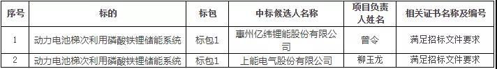動(dòng)力電池梯次利用儲(chǔ)能系統(tǒng)框架招標(biāo)項(xiàng)目(二次招標(biāo))中標(biāo)候選人公示