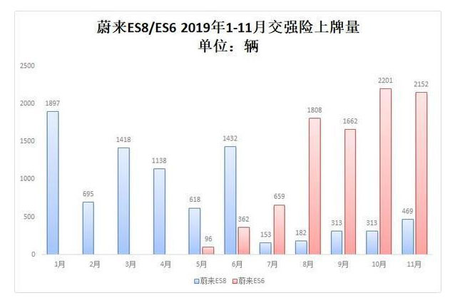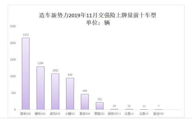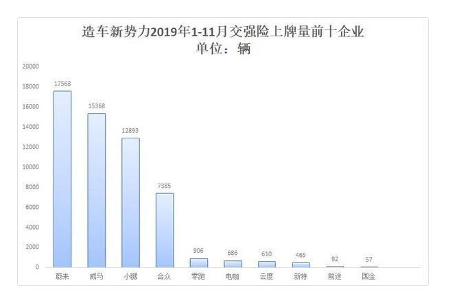 據(jù)最新機動車交強險數(shù)據(jù)顯示,造車新勢力11月新車上牌量降至6369輛,2019年前11個月累計交強險上牌量達到56587輛。