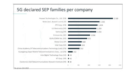 5G專(zhuān)利申請(qǐng)量排名,華為第一,中興第三,截至2019年6月15日