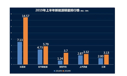 2019年上半年國(guó)內(nèi)市場(chǎng)新能源汽車(chē)銷(xiāo)售排行,前5名都是自主品牌