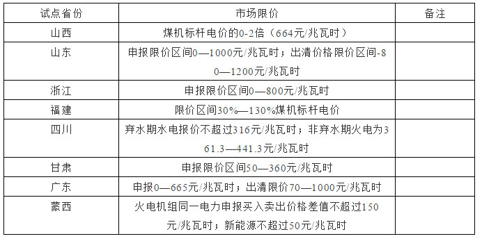 8個省區(qū)均對現(xiàn)貨市場申報價格或出清價格進(jìn)行限價。