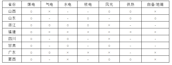 (注:Ο表示參與,×表示不參與,-表示無此類電源)