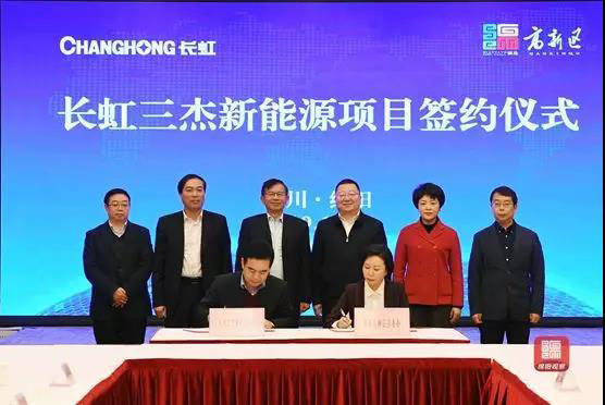 2019年12月31日,長虹三杰新能源有限公司與四川綿陽市高新區(qū)在綿陽簽署新能源電池項目合作協(xié)議。