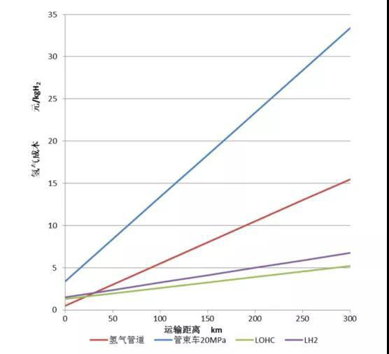 圖3不同氫氣儲運方式的成本對比