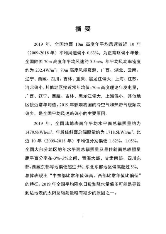 《2019年中國(guó)風(fēng)能太陽(yáng)能資源年景公報(bào) 》全文