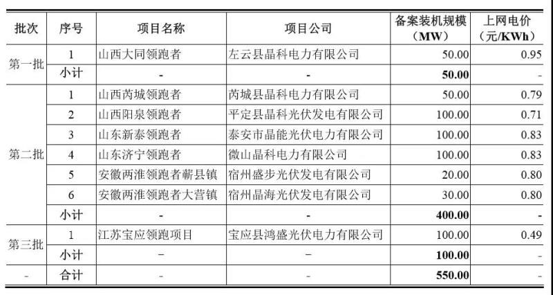 晶科電力已并網(wǎng)領(lǐng)跑者項目