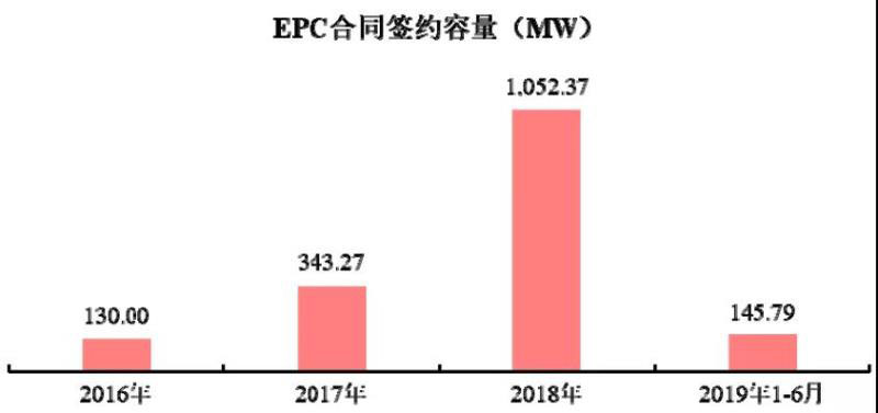 另一方面,晶科電力也憑借在光伏電站開發(fā)設(shè)計方面較強的技術(shù)實力和豐富的工程經(jīng)驗,不斷開拓EPC業(yè)務(wù),EPC營收比重逐年上升,承接的EPC容量也在不斷攀升。